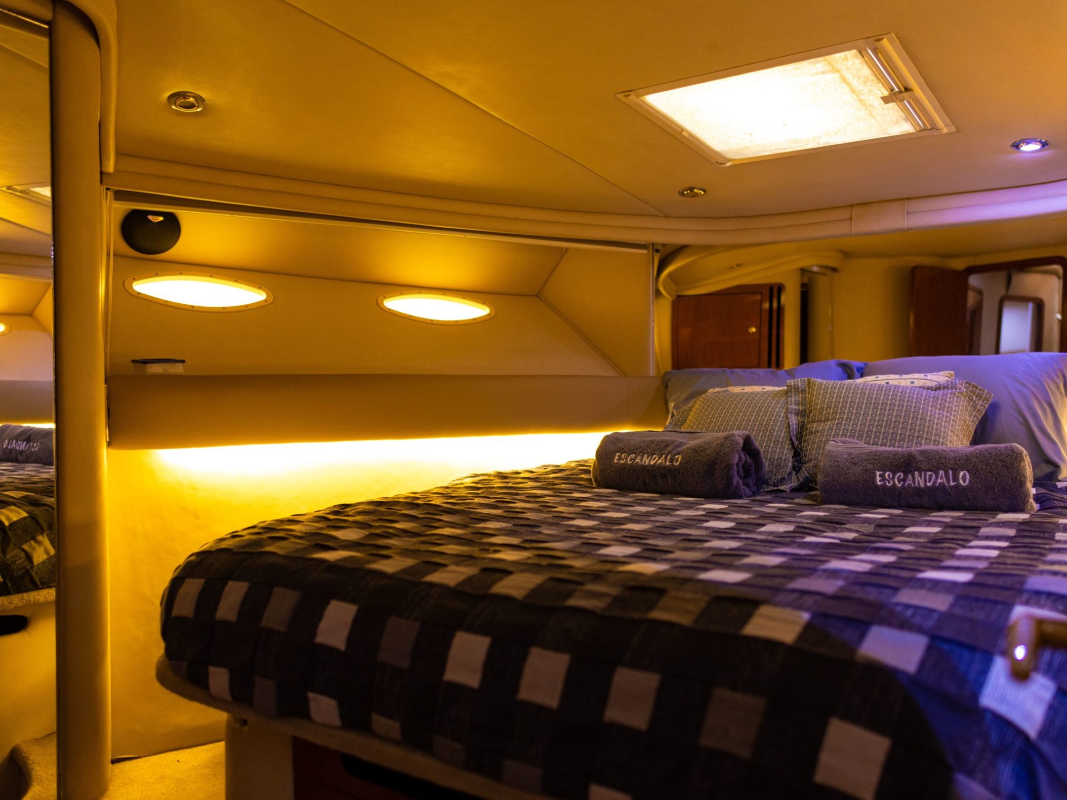 With three cabins, two bathrooms, and three outdoor areas, there’s plenty of room to stretch out, soak up the sun, or stage your own yacht-themed reality show. Want to keep it low-key? Lounge at the front in the two sun chairs and channel your inner celebrity. Feeling social? Turn up the music, grab a drink, and party the day away!